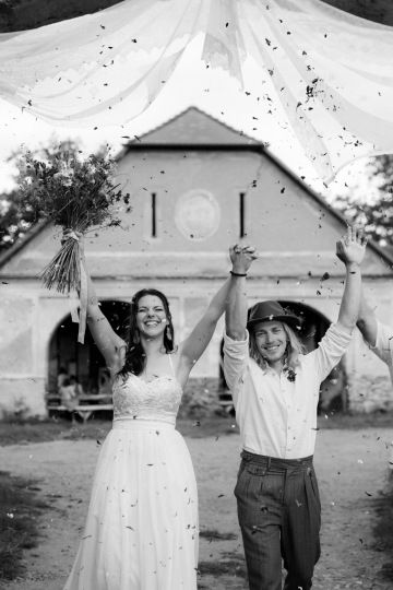 Uzavřený hospodářský dvůr uprostřed krásné přírody poskytuje široké možnosti uspořádání akce - pod širým nebem v ovocném sadu s nádherným výhledem do krajiny, pod střechou ve stodole s výhledem do ovocného sadu, v historické kolně uprostřed dvora nebo ve stájích pod apartmány. Ideální místo na svatbu: krásné prostředí starého dvora a nádherné okolní přírody.